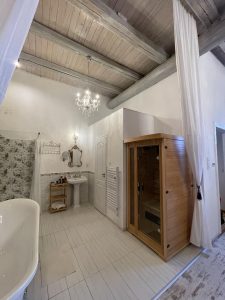 The jacuzzi, which accommodates 4 people, is located in the wine cellar.